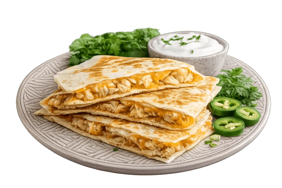 grilled tortilla filled with melted cheese and seasoned chicken